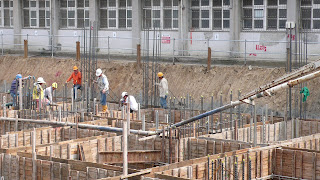 PC(預拌混凝土)打底工程:為施作基礎前的工程,以混凝土鋪設於土壤上方約10公分作為地盤穩固及基礎放樣的水平基準面,同時也可以增加基礎鋼筋的保護層。